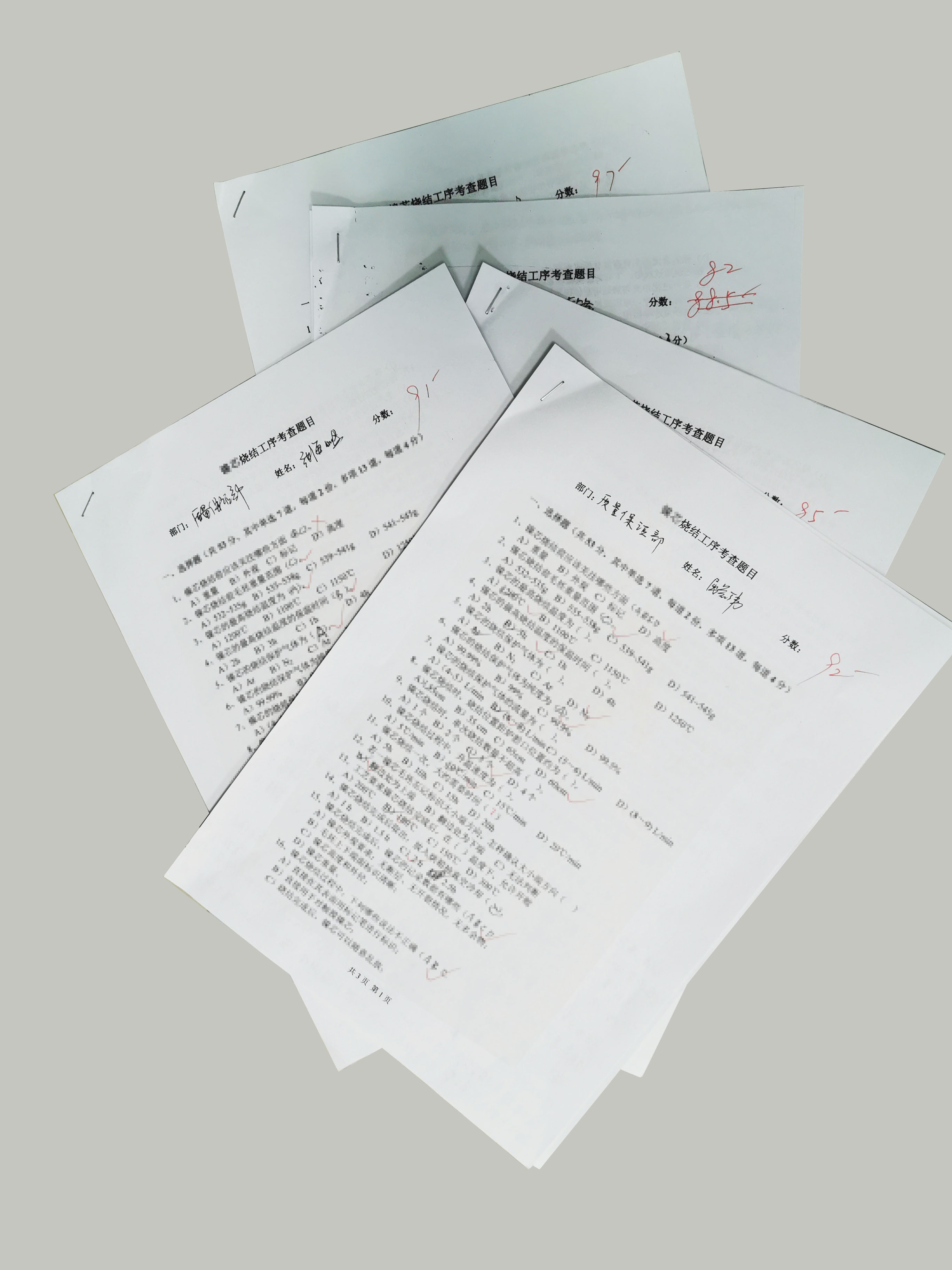 為了提升過(guò)程質(zhì)量,促使過(guò)程控制人員及操作人員熟知并掌握零件生產(chǎn)過(guò)程的關(guān)鍵點(diǎn),8月5日,公司組織檢驗(yàn)人員、操作人員進(jìn)行了燒結(jié)工序的質(zhì)量控制點(diǎn)考試。考點(diǎn)涉及生產(chǎn)過(guò)程的人、機(jī)、料、法、測(cè)等六個(gè)方面,使得從事燒結(jié)工序的操作人員與質(zhì)量控制人員對(duì)本工序的關(guān)鍵點(diǎn)及注意事項(xiàng)進(jìn)行了一次全面的復(fù)盤(pán),為后期開(kāi)展的燒結(jié)工序取得良好的過(guò)程控制奠定基礎(chǔ)。