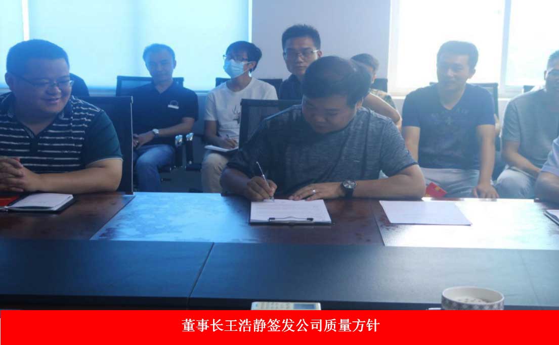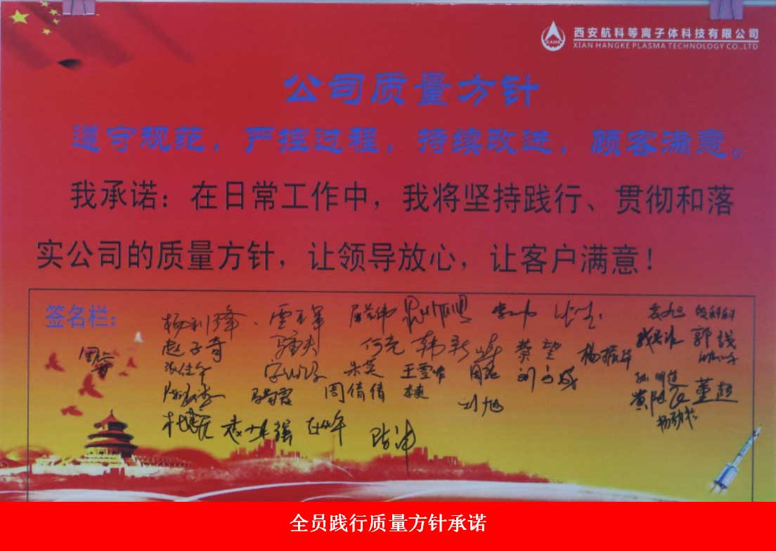 在舒緩的音樂聲中,公司董事長(zhǎng)兼總經(jīng)理王浩靜簽署和批準(zhǔn)了公司的質(zhì)量方針,標(biāo)志著質(zhì)量方針正式發(fā)布和實(shí)施,意味著西安航科吹響了質(zhì)量管理的號(hào)角,公司的質(zhì)量管理邁入了新時(shí)代。在副總經(jīng)理兼管理者代表?xiàng)罾h帶領(lǐng)全體員工向董事長(zhǎng)兼總經(jīng)理王浩靜承諾:“我承諾,在日常工作中,我將堅(jiān)持踐行、貫徹和落實(shí)公司的質(zhì)量方針,讓領(lǐng)導(dǎo)放心,讓客戶滿意!”,在鏗鏘有力的音樂聲中,全體員工在宣誓板簽下了自己的承諾,表示在日常工作中將嚴(yán)格遵守公司的質(zhì)量方針,為公司質(zhì)量發(fā)展貢獻(xiàn)自己的一份力量。