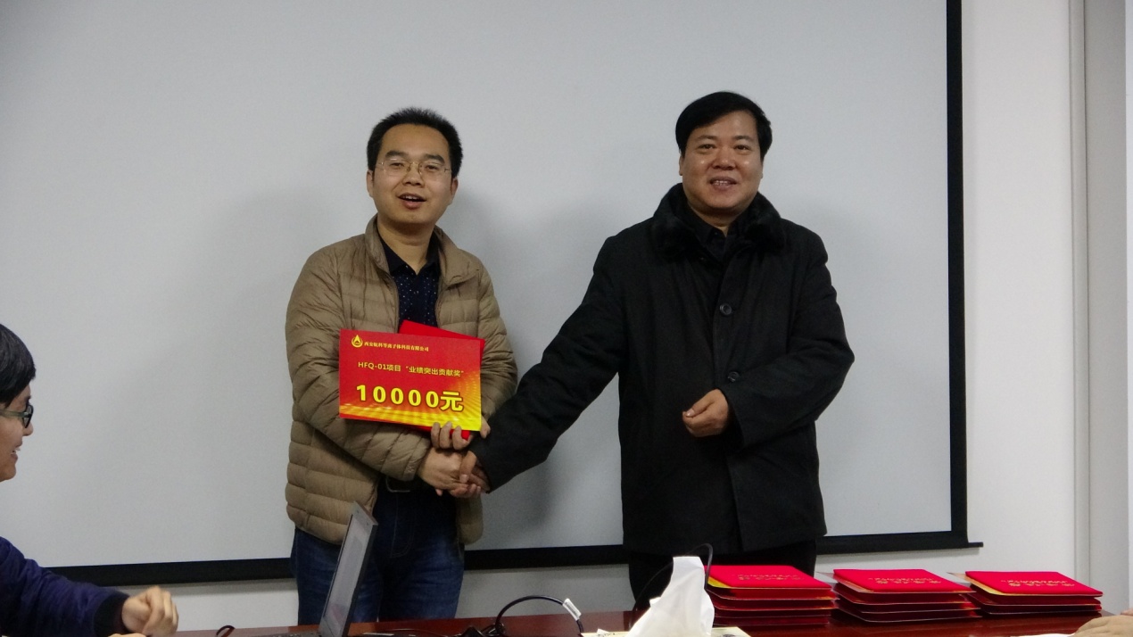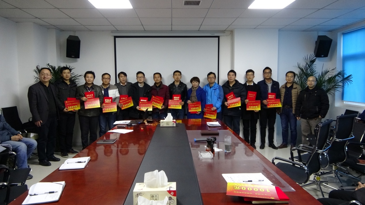 緊接著公司總經(jīng)理靳有林、副總經(jīng)理陳紅明、總工程師馬俊分別為項(xiàng)目組其他受到表彰的成員頒發(fā)榮譽(yù)證書及獎(jiǎng)金,并合影留念。