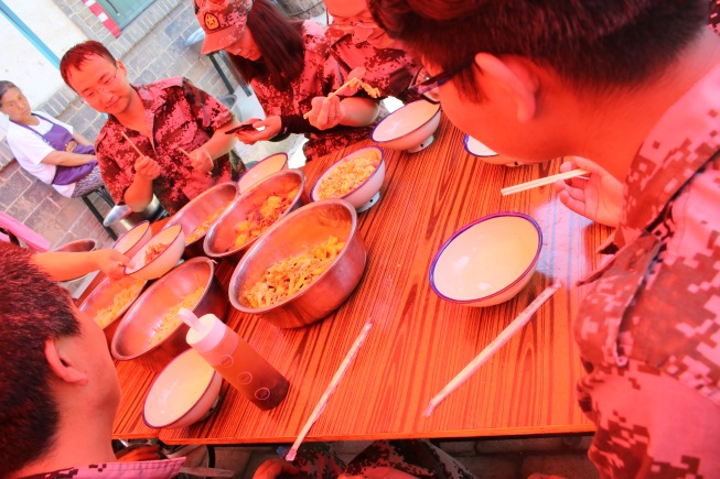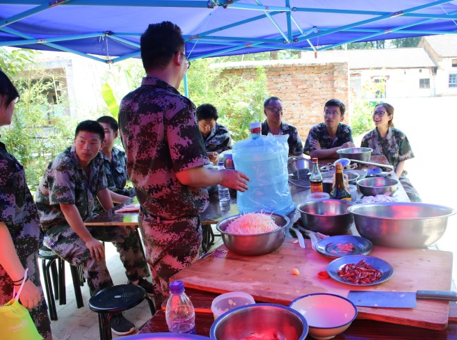 到了中午,我們下廚房自己做飯,有的洗菜,有的切菜,張工、趙部長毫不猶豫的擔(dān)任了各自團(tuán)隊大廚的角色,大家即使已經(jīng)筋疲力盡,但還是沉浸在了烹飪的歡樂當(dāng)中。