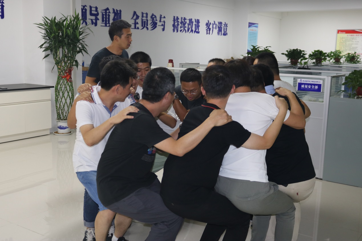 會(huì)議結(jié)束后,由綜合管理部郭榮組織全體員工開展了名為“人椅”的團(tuán)隊(duì)建設(shè)活動(dòng)。分別以奇數(shù)和偶數(shù)組成兩個(gè)比賽組,最后看哪個(gè)組堅(jiān)持的時(shí)間更長則獲勝,并發(fā)有小禮物作為鼓勵(lì)?;顒?dòng)期間,大家都你爭我搶的談?wù)撟约旱挠^點(diǎn),也在不斷的嘗試,可慢慢的這種聲音少了,更多的是練習(xí),總結(jié)經(jīng)驗(yàn),學(xué)習(xí)別的戰(zhàn)隊(duì)的方式,女同志也積極響應(yīng)游戲規(guī)則,在這里,沒有男女,沒有上下級,只有戰(zhàn)友,只有兄弟!